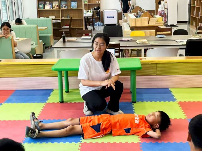 安全防护教育注重实用性与互动性。志愿者携带急救教学模型,分步骤讲解心肺复苏、海姆立克急救法等知识,用通俗语言拆解“按压深度约5厘米,每分钟100-120次”等操作要领。课程设置模拟演练环节,学生轮流操作,志愿者在旁纠正手势角度、按压力度等细节,通过理论与实操结合,让孩子们掌握关键时刻能救命的技能。