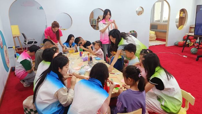 (图为成员指导孩子们进行“泉韵诗画”古诗主题手工创作。孟德宇 张长堃 供图)