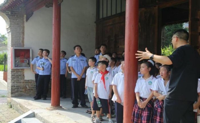 二、古建文脉里的“守护”课 在校长马国超的带领下,一场别开生面的“校园历史课堂”活动温情开展,活动中,马国超校长沿着校园中轴线,逐一讲解标志性历史遗存,志愿者团队同步开展互动教学,结合实物引导孩子们思考“老物件的保护意义”。“这些石雕就像会说话的历史书,坏了就再也读不到里面的故事了”“古柏看着你们长大,你们也要帮它健康生长呀”——通俗的讲解让孩子们逐渐理解,守护历史根脉与守护成长未来同样重要。通过沉浸式体验,让孩子们在触摸历史中厚植文化认同,为传承发展注入青春力量。