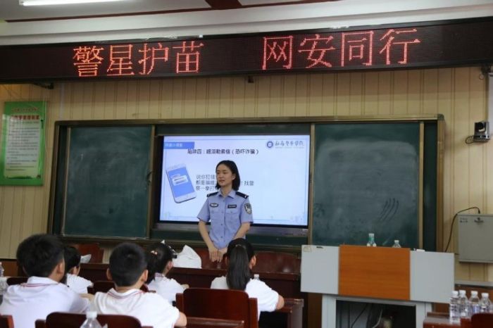 三、趣味课堂里的安全“种子” 网络安全课上,志愿者王新妍为孩子们讲解网络安全知识,为孩子们讲一些具体的实际案例,告诉孩子们要保护好个人的隐私, 随后的抢答赛里,“陌生链接点不点”“密码能不能告诉网友” 等问题接连抛出,答对的孩子获得印有警徽的小书签,课堂上的掌声比蝉鸣还要热烈。健康安全讲解时,志愿者们用 “过马路要像小企鹅一样结伴走”“零食袋上没有生产日期就像没写名字的信,不能要” 这样的比喻,让安全知识像糖豆一样好记。成长筑起坚实的安全防线。