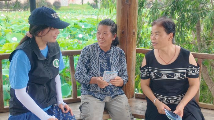 图为实践团成员向村民介绍防诈骗知识 薛一江摄