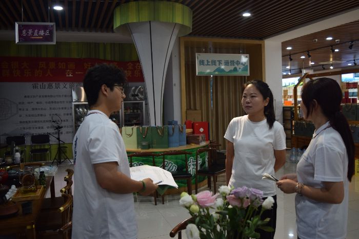 产业园内键盘敲击声、直播带货声此起彼伏。年轻主播们正热情推介霍山黄芽茶、石斛等"宝藏"特产,屏幕上实时滚动的订单展现电商强劲动能。调研团成员亲身体验直播,巧妙将革命老区红色故事融入黄茶推介:"品茶不仅享味蕾,更是对历史的致敬",创新模式点燃观众热情。