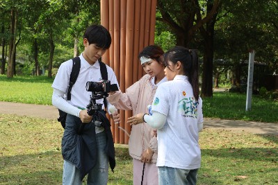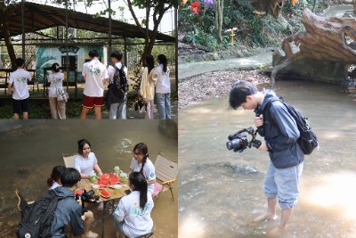 当天下午,“创点南星”突击队深入佛山三水南山镇南丹山森林王国。此次行动既是助力“百千万工程”的实践,队员们更以艺术为纽带,让自然与创意碰撞出独特火花。队员们扛着设备穿梭林间,希望让更多人触摸到南山的诗意。带队的叶雅红老师一语道出初心:让生态之美被更多人看见。