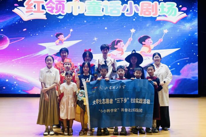 为创新科普形式,丰富青少年暑期科学体验,7月26日,山东理工大学化学化工学院“小小科学家”科普社会实践团联合淄博市科技馆、淄博市文化馆和淄博市青少年科技教育协会,依托“红领巾”少先队品牌,对小朋友们进行为期四天的培训,最终演绎出科普与艺术相结合的舞台剧《水滴石穿》,接着由实践团成员自主编排并呈现《白雪公主与小高人》舞台剧,为青少年带来趣味科普体验。