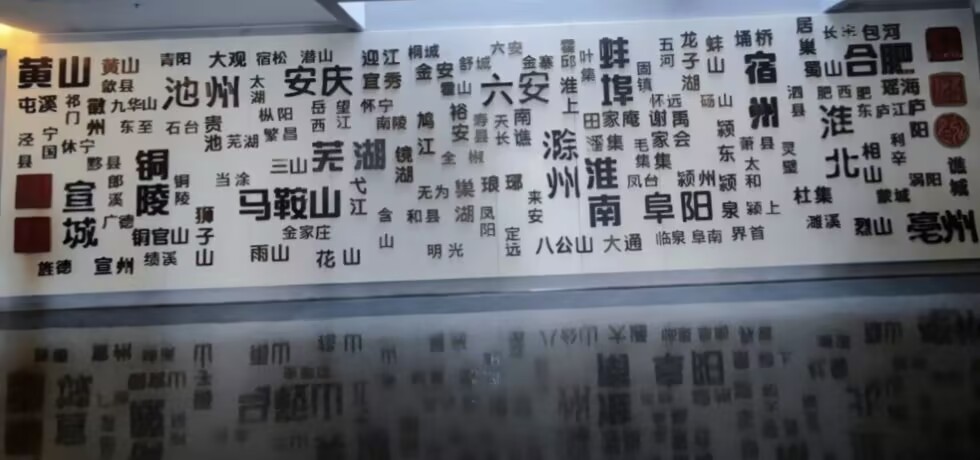 “安徽文房四宝”“江淮撷珍”等展厅,展现了安徽深厚的文化底蕴。文房四宝曾见证了无数革命志士写下激昂的战斗檄文,江淮大地的珍宝则承载着人民对美好生活的向往,这与红色革命追求民族独立、人民幸福的目标高度契合。安徽地名墙更是串联起一个个红色地标,从大别山到皖西革命根据地,每一个地名都镌刻着红色记忆,诉说着安徽人民在革命年代的英勇壮举。