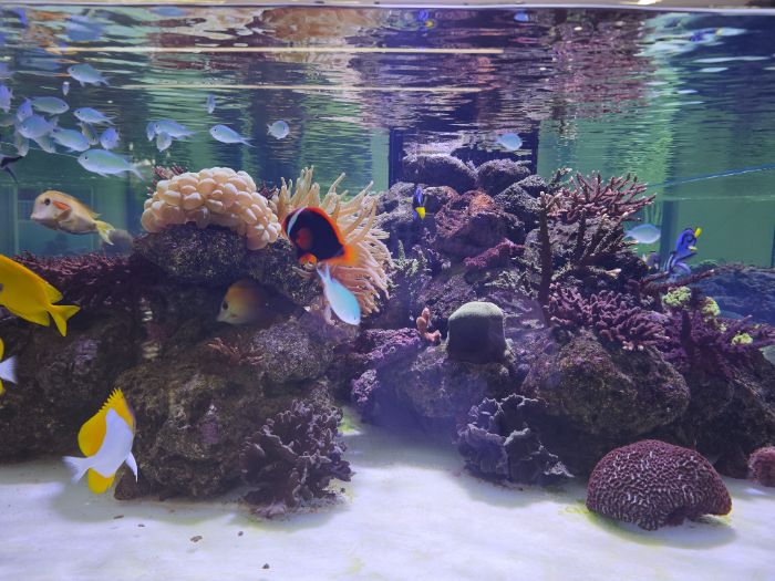 走进研究所内的珊瑚生态缸区域,眼前的景象瞬间吸引了实践队员的目光。五彩斑斓的鱼儿在形态各异的珊瑚之间自由穿梭,构成一幅灵动的海底画卷。队员们大多是第一次近距离见到珊瑚,此前仅在图片和视频中领略过它的风采,此刻无不惊叹于这份真实的美。讲解员结合生态缸里的珊瑚,细致地向队员们介绍了各类珊瑚的特性与生长习性。