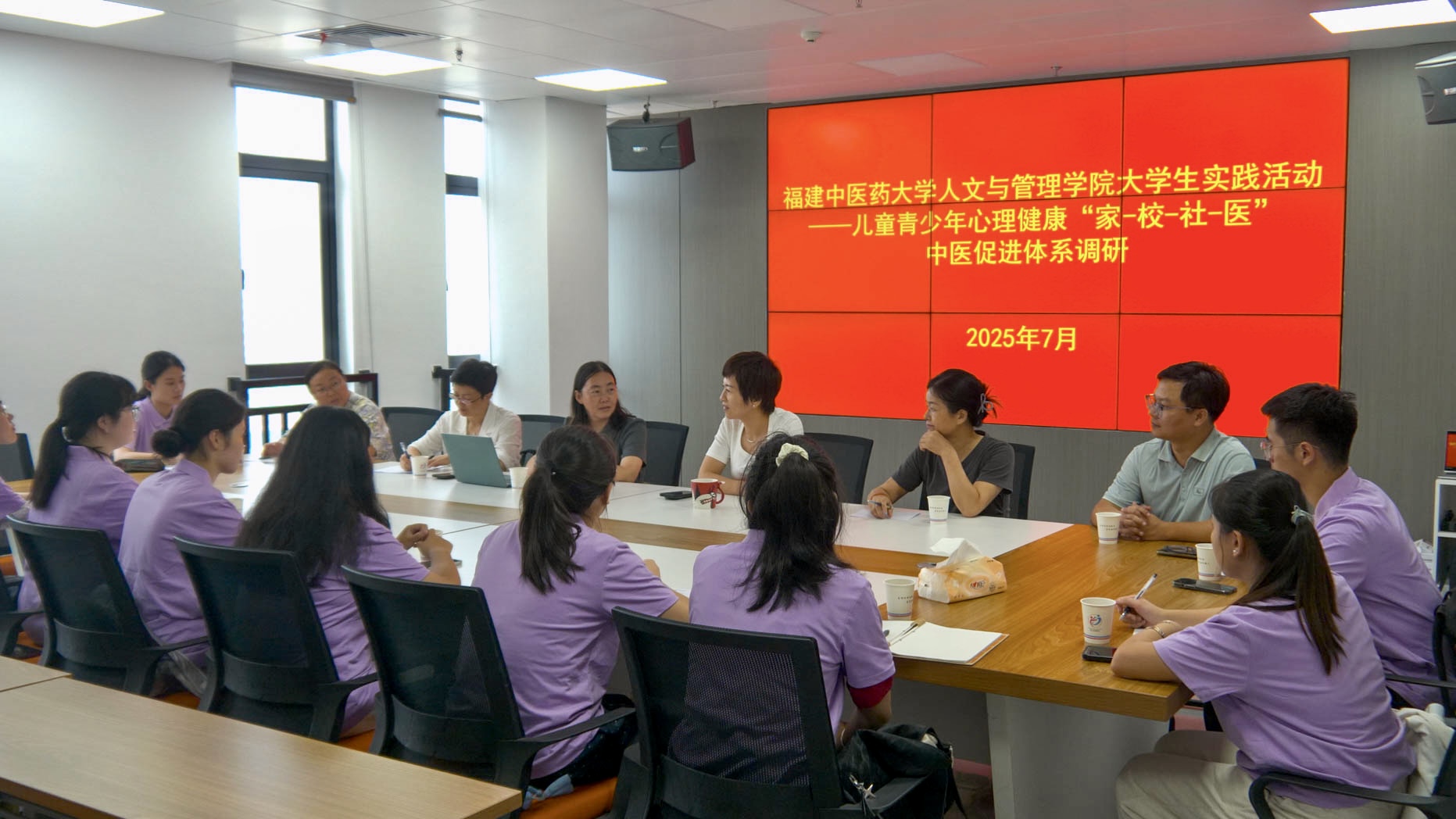 福建中医药大学“润心拾光”社会实践队是一支长期扎根于县域儿童青少年中医药心理防治的、多专业本科生组成的大学生社会实践队伍,已累计走访调研福建省福州市、宁德市,泉州市等多地区县域的精神卫生专科医院、中医院及社区医疗卫生机构。为更好的促进“家-校-医-社”县域儿童青少年心理防治协同体系建设,2025年7月28日至29日,实践队全体成员深入晋江市第三医院、晋江市妇女联合会、晋江市中医院、晋江市元中和医馆等开展深度调研。
