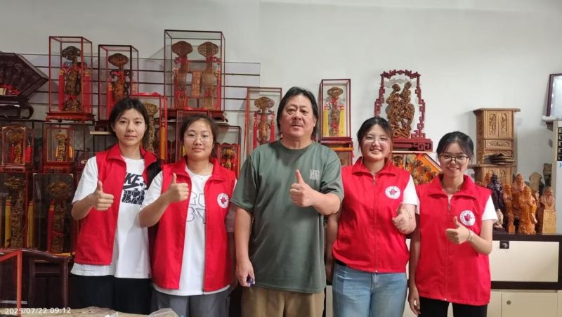 活动尾声,团队成员与褚德胜老师合影留念。正是在褚德胜老师的细致讲解下,同学们得以深入认识楷木雕刻这门非遗技艺,系统了解其历史渊源,进而对曲阜这座古城的文化底蕴有了更为真切的感知。在他看来,每一刀、每一刻的雕琢,既是对传统技艺的执着坚守,更是对文化根脉的悉心守护,这也让同学们对非遗传承的意义有了更深刻的体悟。