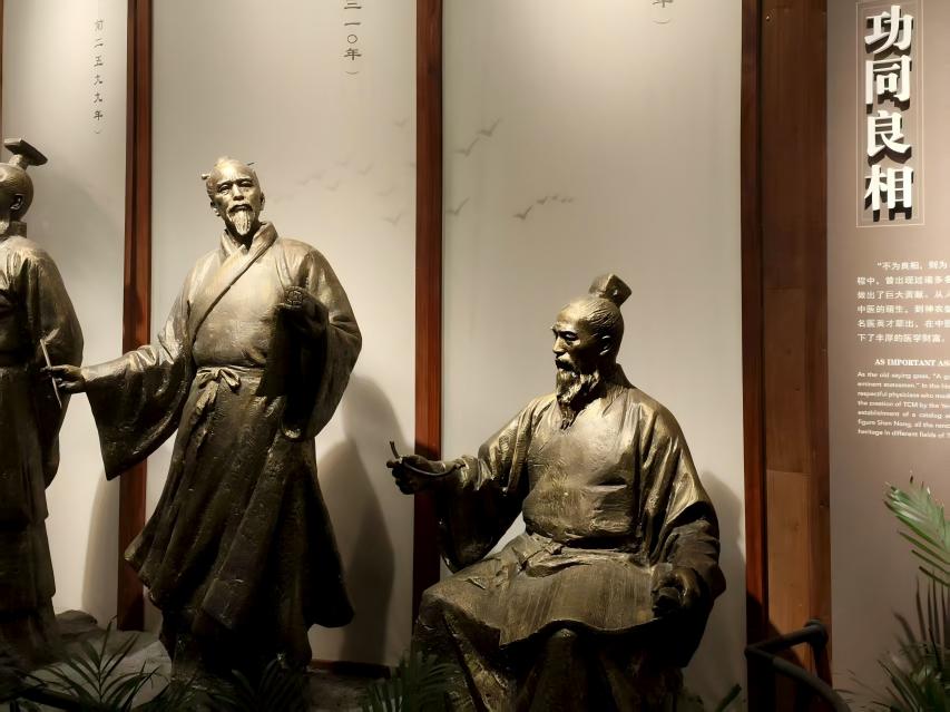 古代医学名家雕像:扁鹊、张仲景等雕像,传递中医药文化价值,助力乡村康养产业探索 。(王一涵摄)