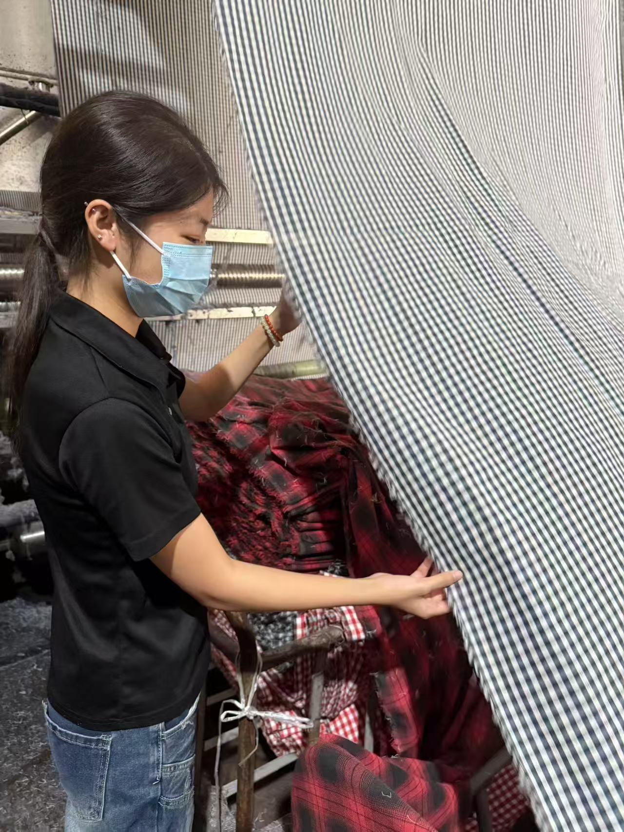 一、现代纺织技术的破局之路实践前5天,团队成员根据筛选,选择了江苏省无锡市江阴市周庄镇天长色织整理有限公司作为本次调研的地点。在天长色织整理有限公司的智能生产车间,32台织机的运行数据实时显示在电子屏上,断纱次数、织造速度、成品合格率等信息通过物联网系统自动汇总分析,异常情况会立即推送预警给技术员。这与过去工人逐个记录数据的方式形成鲜明对比。