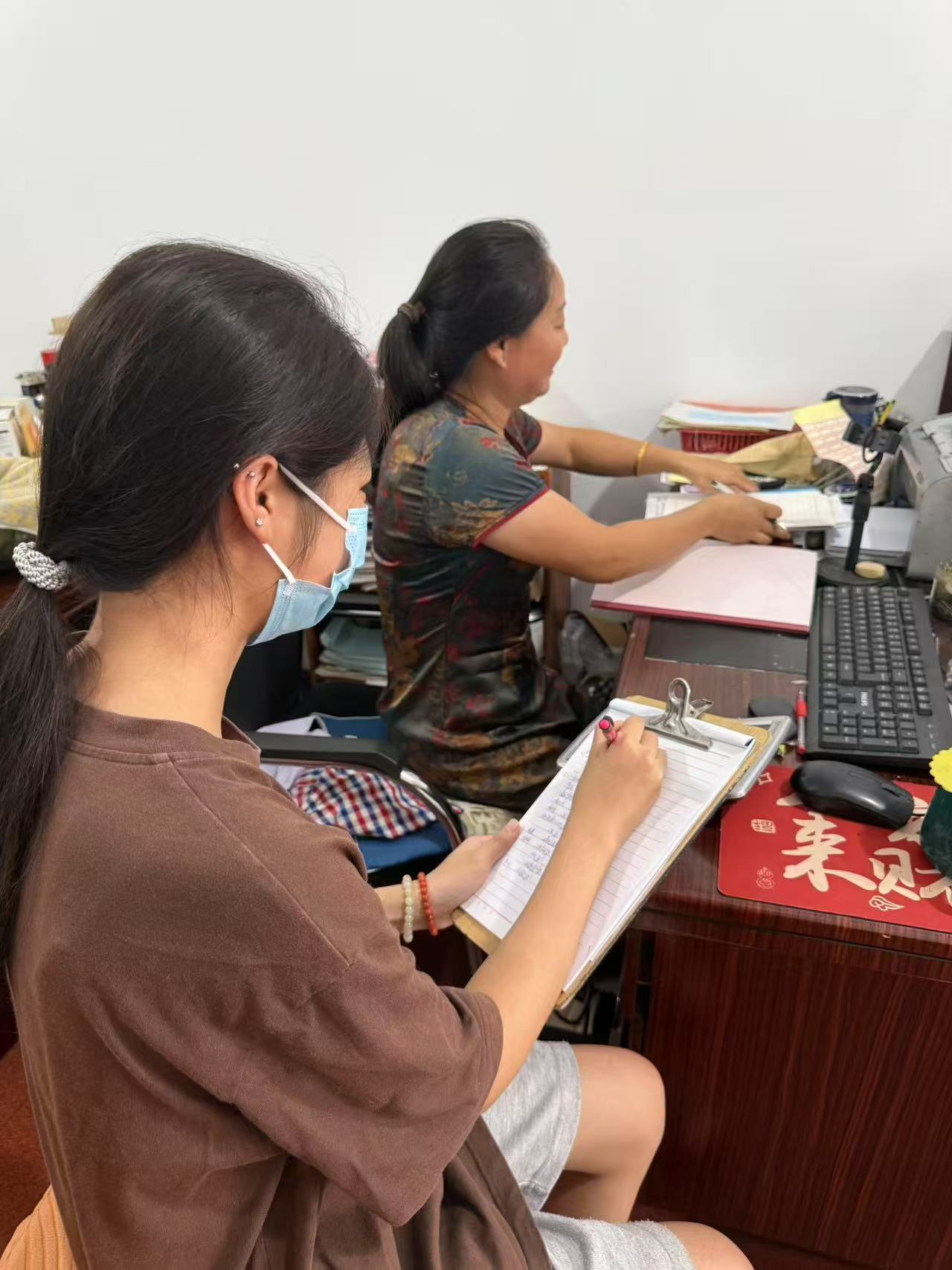图为团队成员向李阿姨调查染布技术 陈玥 供图