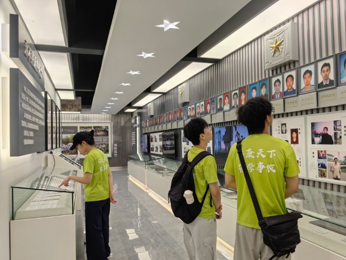 实践团参观柏垫本地革命历史纪念馆,通过丰富史料与实物展陈,重温革命战争年代的峥嵘历程。步入英烈山纪念馆,一幅幅珍贵的历史照片、一件件斑驳的革命文物、一幕幕生动的战斗场景再现,将队员们带回到那段烽火连天的峥嵘岁月。 浮雕墙全景呈现柏垫镇历史脉络,馆内集中陈列航空英烈手稿与遗物。团队成员近距离观摩展品,深切感受革命老区的不屈精神与国防军工事业的忠诚奉献。在讲解员引导下,先辈们浴血奋战的英勇事迹清晰展现,其担当精神与奉献品格引发团队深刻思考。团队成员单婧怡谈及参观感受时提到,此次教育实践强化了传承红色基因的使命感,激励青年群体将个人成长融入国家发展大局。