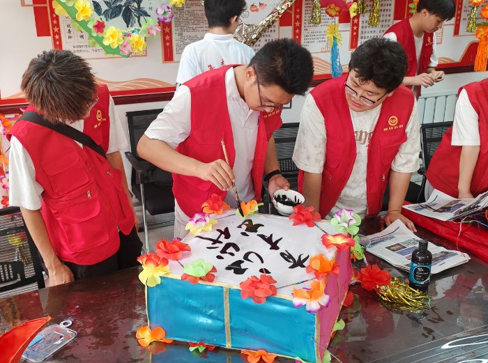 图为“灵心灯语”乡村振兴实践团队员们亲手制作花灯。薛彤宇摄