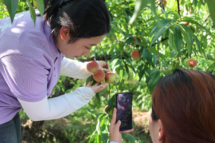 队员们走进生机勃勃的田园,开启了丰富多彩的农事体验活动。在水蜜桃种植园里,一个个饱满多汁的水蜜桃挂满枝头,散发着诱人的香气。队员们穿梭在桃林间,按照果农传授的方法,挑选成熟的桃子,摘下放入篮中。虽然烈日炎炎,汗水湿透了衣衫,但看着一筐筐丰硕的果实,大家的脸上洋溢着喜悦的笑容。