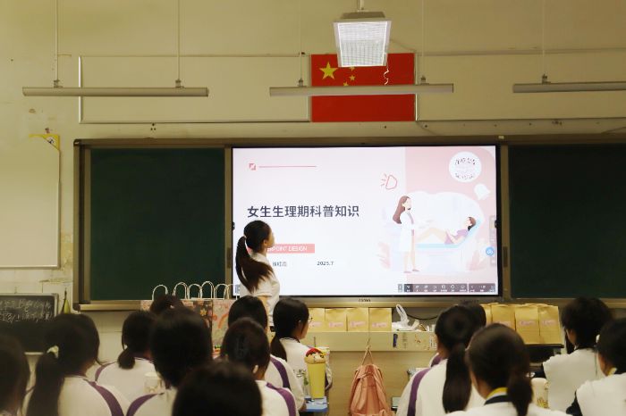 在生理期科普宣讲环节,张红霞以 PPT 形式,通过生动的图示和通俗的语言讲解女性生理期基础知识,帮助同学们正确认识自身生理结构,并重点强调经期护理的注意事项。此外,她强调,选择正规品牌的健康卫生巾是保障自身健康的基本要求,今年 315 曝光的“黑心棉”卫生巾问题也提醒大家,务必通过正规渠道选购,切实守护自身健康。