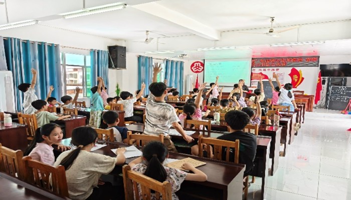 二、润心之行:五育交融滋养成长沃土 “随风潜入夜,润物细无声”。数学课上,田忌赛马的古战场在黑板重现。支教老师以千年智慧为线,串起概率与博弈的珍珠,脑筋急转弯激起思维碰撞的火花。孩子们争先举起的手臂如春笋破土,眼中闪烁的求知光芒照亮了曾被视作枯燥的公式定理。