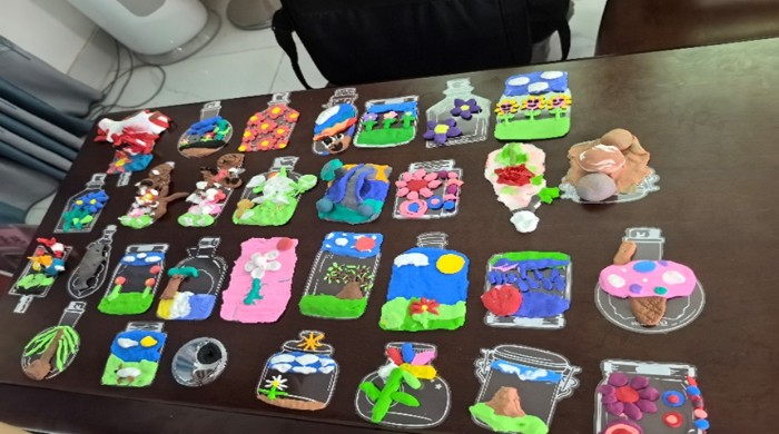 图5手工课孩子们的作品展示(微光筑梦实践团摄)