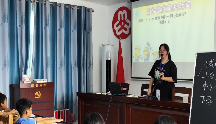 图3数学课上向小朋友们讲解田忌赛马的故事(微光筑梦实践团摄)