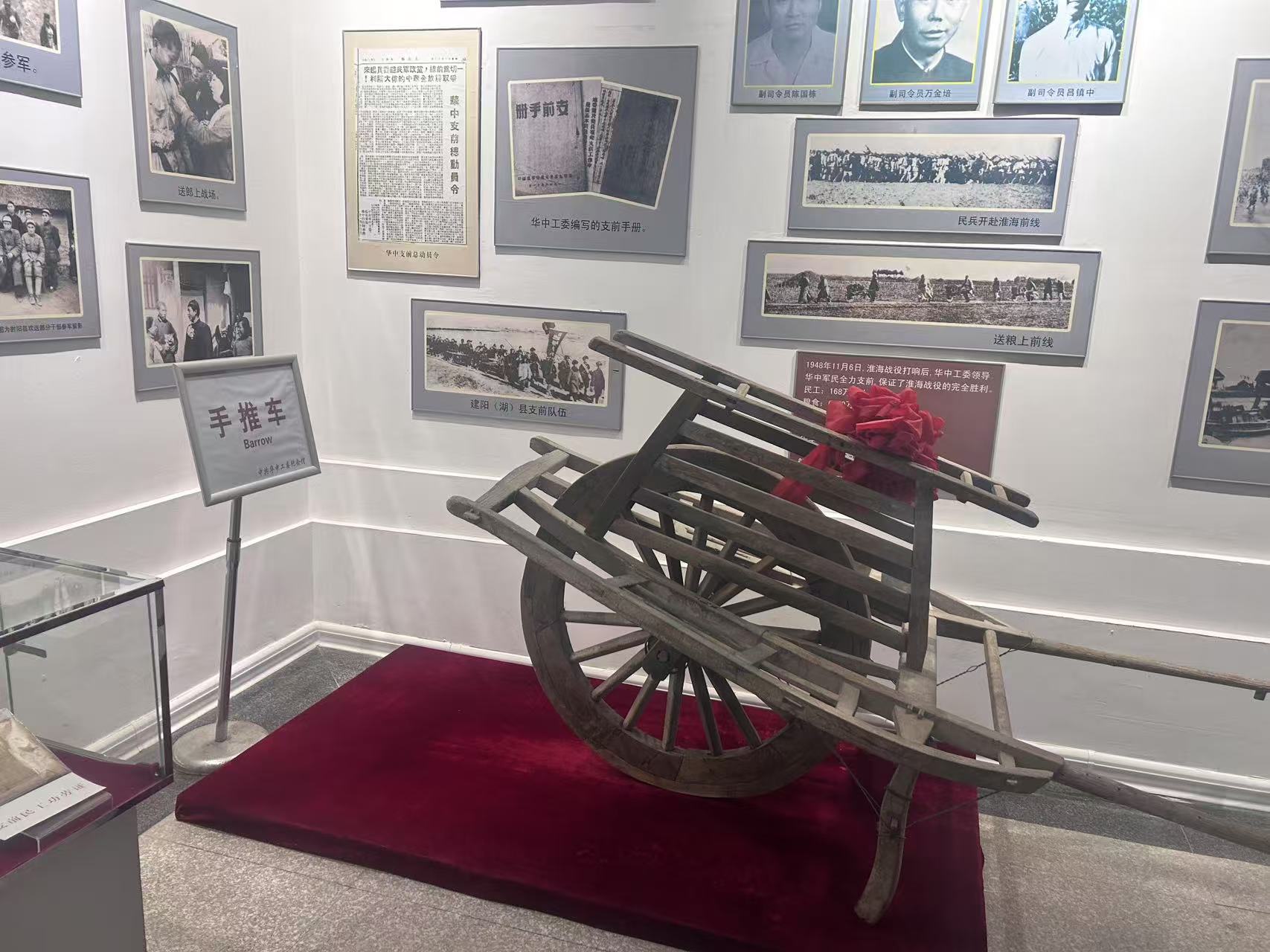 实践团成员在讲解员的带领下,依次参观了“东方欲晓”“石破天惊”“车轮滚滚”“将星璀璨”“光荣与豪迈”五个主题展厅。在“东方欲晓”展厅,一幅幅历史图片和文献资料,向大家展示了解放战争前夕华中地区的复杂局势以及华中工委成立的历史背景,让同学们深刻感受到了革命先辈们在艰难困苦中坚定信念、勇挑重担的伟大精神。步入“石破天惊”展厅,声光电复原的华中土地会议场景吸引了同学们的目光。在这次会议上,华中工委总结了以往土改工作的经验教训,纠正了“左”的偏向,制定了更加符合实际情况的土地改革政策,推动了华中地区土地改革运动的深入开展。通过逼真的场景复原和详细的讲解,同学们仿佛亲眼目睹了当年会议的热烈氛围,深刻体会到了土地改革对于调动广大农民革命积极性、巩固解放区政权的重要意义。继续前行,来到“车轮滚滚”展厅,这里陈列着一辆辆支前独轮车、牛车以及各种运送物资的工具,还有一幅幅展现支前群众忙碌身影的图片。看着这些展品,同学们的眼前仿佛浮现出当年那一幅幅感人至深的支前画面,深刻感受到了人民群众在革命战争中的巨大力量以及军民团结一心、共克时艰的深厚情谊。在“将星璀璨”展厅,陈列着陈丕显、管文蔚、姬鹏飞等华中工委领导人和众多革命先烈的照片、事迹介绍以及他们使用过的办公用品、生活用品等。这些珍贵的文物和资料,生动地展现了革命先辈们在艰苦的战争环境中,为了实现革命理想,不畏艰难险阻、出生入死的英雄气概和坚定信念。他们的英勇事迹和崇高精神,让同学们深受触动,纷纷表示要以他们为榜样,努力学习,为实现中华民族伟大复兴的中国梦贡献自己的力量。