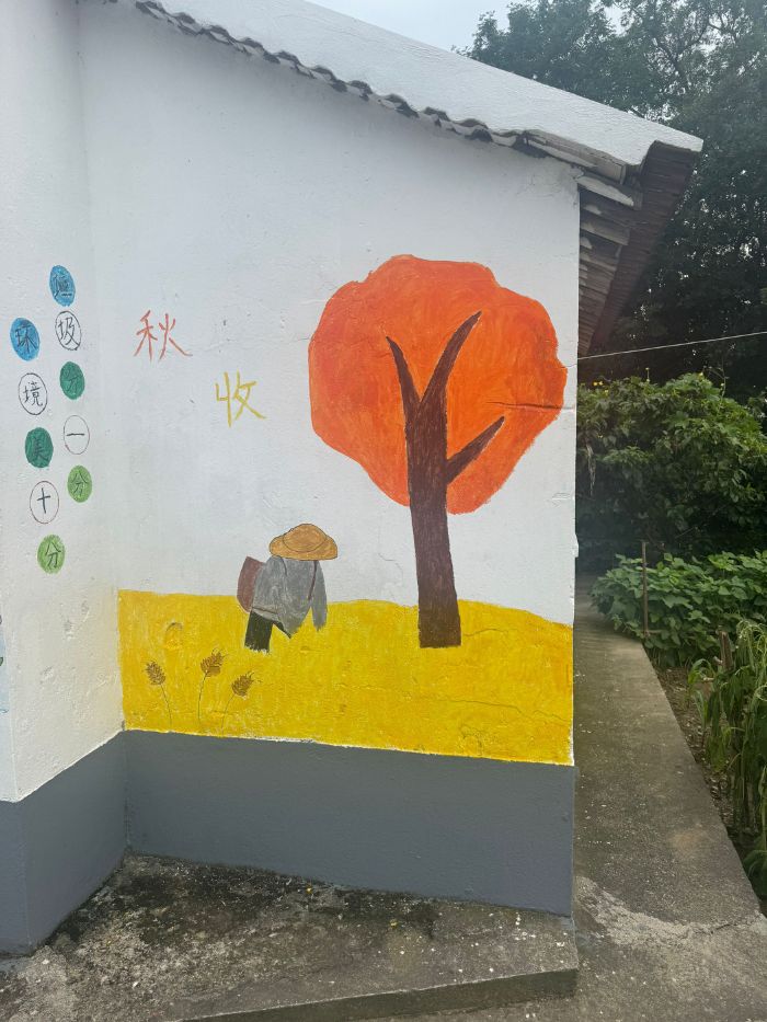 图为志愿者与孩子们共同绘制的“秋收”主题墙绘。房轩 供图