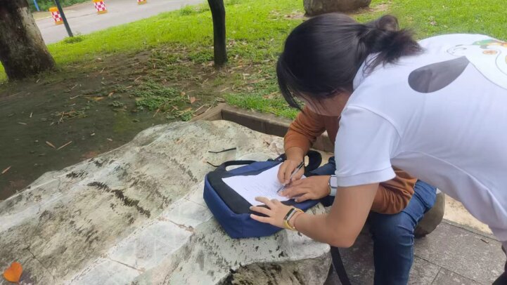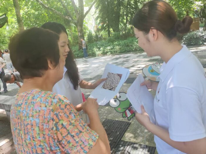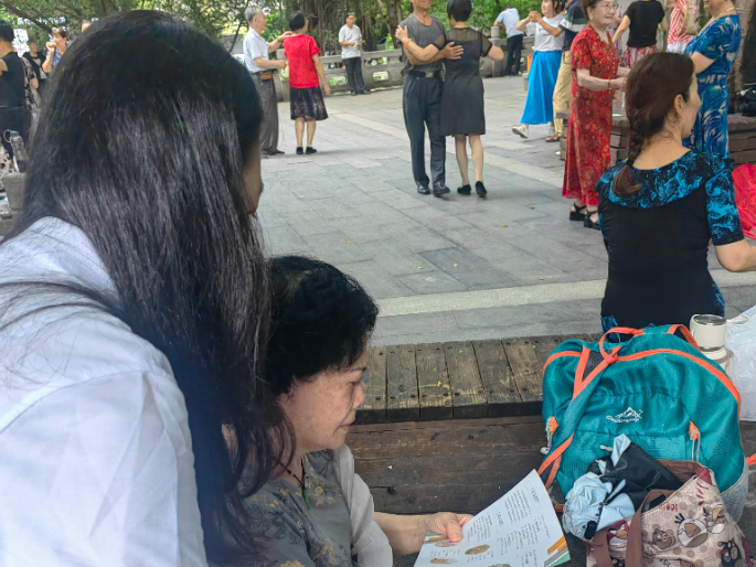 夏日的绿茵下,在泉州海丝公园、漳州老人会等场所,实践队队员以图文并茂的宣传册为载体,向纳凉老人普及中药材知识。宣传册上印有日常用语和中药材图片。队员们用标准的普通话讲解展示图片的中药材功效,如:黄芪能够补气升阳;甘草能够清热解毒;枸杞能够明目润肺。老人们通过图像直观学习专业名词发音。针对部分老人难以理解宣传册上的普通话药材名称的现象,队员耐心地用当地的方言对照解释,其中像“茯苓”、“芡实”等专业词汇,队员们用方言描述药材的形态和功效,让抽象的中医药知识变得通俗易懂。