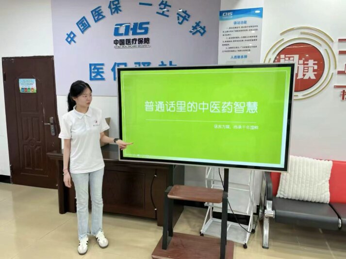 实践队充分发挥专业特色,在社区老人会,开设“养生普通话课堂”,队员以标准普通话示范“足三里”“合股穴”等夏季解暑穴位的发音,并带领老人朗读养生口诀,如:冬吃萝卜夏吃姜;足三里常按,脾胃强健病不犯。课堂将药材知识、食疗方剂等中医药知识的传播与普通话训练结合,吸引超百名老人参与。