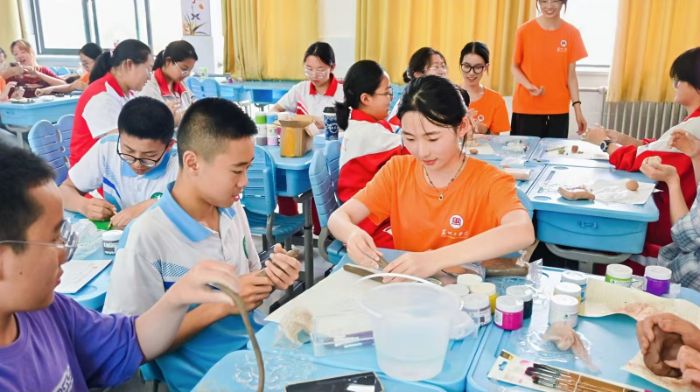 实践伊始,教改班同学们迅速转换角色,以“小老师”的身份投入为期五天的支教工作。他们面向安定区实验中学七年级和八年级共四个班级的学生,精心设计并实施了涵盖阅读鉴赏、音乐艺术、创意手工、书法绘画、运动健康等多维度的素质拓展课程。课堂上,成员们展现出高度的责任心和创造力。他们巧妙运用互动游戏、情境模拟、小组合作等形式,极大激发了当地学生的学习热情与参与度。韩玉佳同学开设的泥塑课成为了亮点。孩子们在她的引导下,不仅捏出了形态各异、憨态可掬的小猫造型,更发挥创意,延伸创作出骰子、小人物等丰富多样的泥塑作品,课堂氛围活跃,想象力与动手能力得到充分锻炼。在精心安排的作业辅导时段,成员们耐心细致地为学生们答疑解惑,有效解决了他们在暑假作业中遇到的困难,巩固了学科知识。