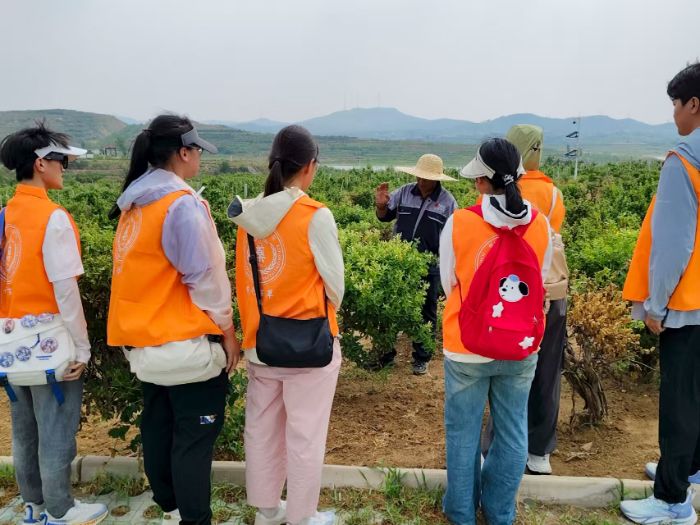 次日,实践队奔赴烟台素禾自然驿站,拜访了乡村振兴创客麦芽阿姨。这位曾从事个体经营和公务员工作的乡村建设者,毅然回到朱柳树村,深耕“药食同源”理念,致力于将当地特色药材转化为健康产品。“药食同源是老祖宗留下的智慧,把药材变成食品,既保健康,又能让乡亲们增收。”麦芽阿姨的分享让队员们深受触动。她带领村民种植药食两用作物、开发特色食品的实践,为实践队提供了乡村振兴的鲜活样本。