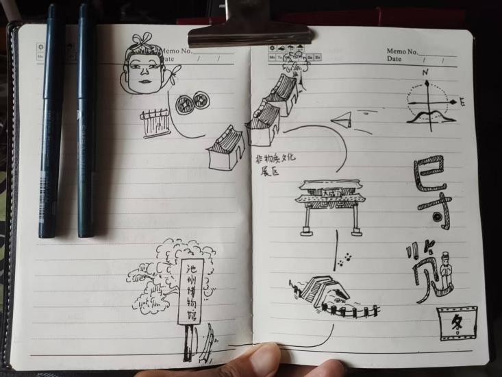 (实践团成员手绘博物馆内傩文化馆位置路线图)