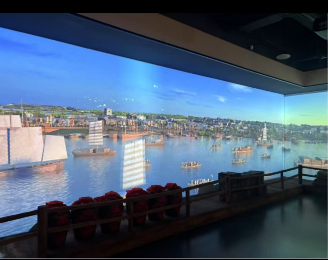 图为运河带来的商业繁荣的屏幕展示。通讯员 姚可欣 摄