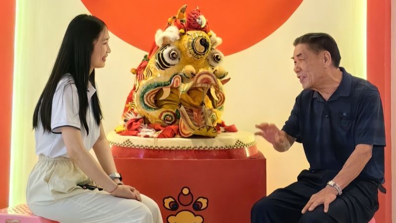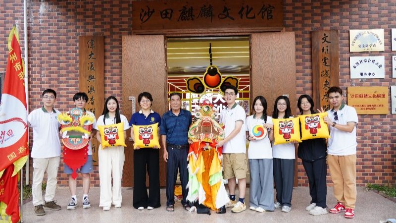 同日下午,实践团走进东澳村麒麟文化馆,对市级麒麟舞传承人进行专题访谈,深入调研这一市级非遗项目的历史与发展。访谈了解到,麒麟舞融合武术元素,“采青”“踏七星”等动作刚柔并济,兼具威严与灵动,至今已有两百年传承历史。通过与传承人及当地村干部的访谈得知,当地创新采用“文化+农产品”模式,将麒麟纹样融入“麒麟米”包装,实现了非遗文化从舞台艺术向日常消费的延伸,既拓展了传统文化的传播载体,又为集体经济创收提供了新途径。
