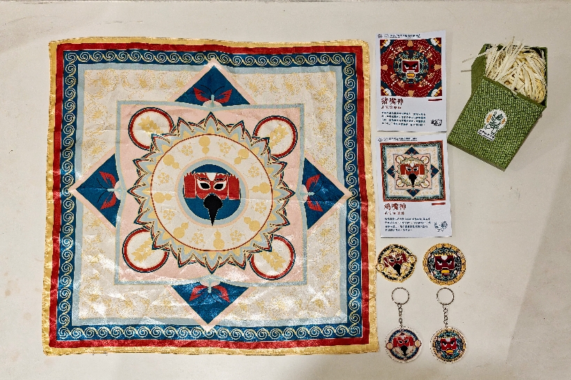 为了更好地宣扬傩文化,实践团成员提取东湖“滚傩神”中猪嘴神与鸡嘴神形象,环绕以瓜藤、稻穗等寓意丰收的纹样,结合南京农业大学的特色印记,自主设计了一系列兼具文化内涵与现代审美的傩文化文创产品,为传统傩文化守正创新注入了青春活力。