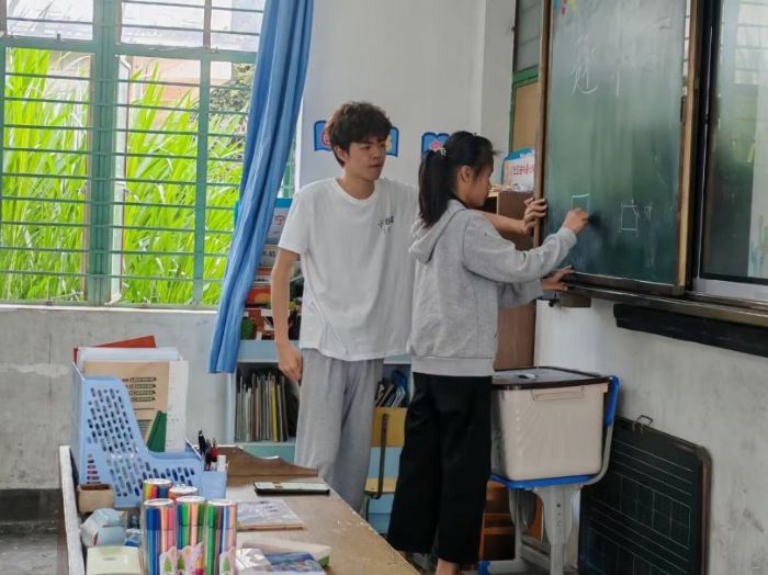 这些精彩纷呈的支教活动,如阳光般照亮着孩子们的童年。生活中的数学奇趣课发掘思维的妙趣,让数字与图形在游戏中绽放智慧;民族团结课堂编织情谊的纽带,让不同民族的故事在分享中交融;作业辅导课夯实学习的基石,让疑难困惑在耐心解答中消散;扭扭棒与神奇黏土课程唤醒创造的灵感,让奇思妙想在指尖变成生动的模样。志愿者们用热忱与创意,在孩子们心中播下热爱的种子,陪伴他们在探索、包容、成长的路上勇敢迈步,让支教的温暖点亮每一颗好奇的童心。(通讯员:施宇梅、梁桢颖、付正倩)