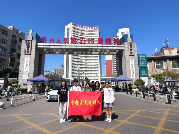 (图为团队成员于郑大五附院大门留影 吕静怡摄)