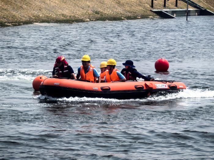 7月10日,江苏省防汛防旱抢险训练中心成了“练兵场”。教官详解管涌、漫顶等险情的处置原理,强调“反滤导渗”、“土袋叠放角度”等实操细节。成员们顶着烈日搬沙袋、筑围井,在模拟险情中练就“应急反应力”。午后乘冲锋舟沿河巡堤,工作人员传授“观植被识渗漏”的基层经验,结合智能监测设备的应用,展现“从人工巡堤到科技赋能”的防汛升级,让成员们真切感受国家水网建设带来的效能提升。