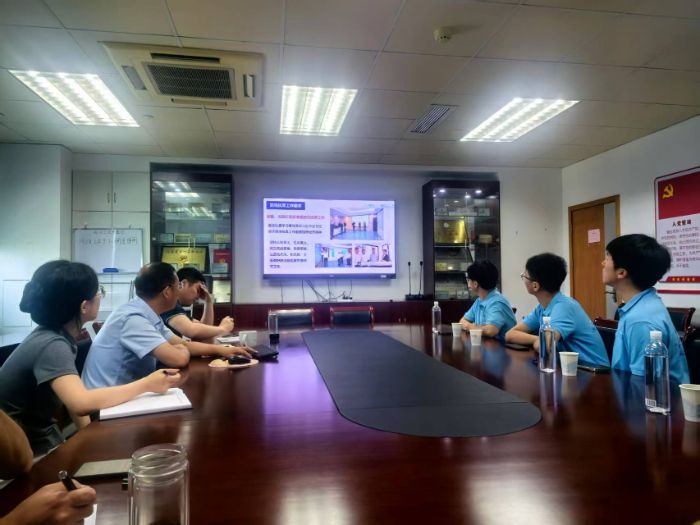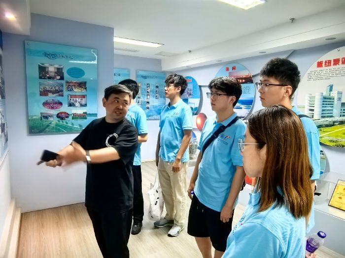 当日下午,实践团来到江苏省设计院。在工作人员引导下,成员们了解了设计院的基本结构与职能,参观了陈列馆,通过展品感受水利事业发展。设计院的专家们还通过短片为实践团介绍了江苏省在水利规划、设计方面的工作成果,以及在国家水网建设中的实践经验。实践团成员们积极提问,与专家们就水利工程建设中的实际问题进行了深入交流。