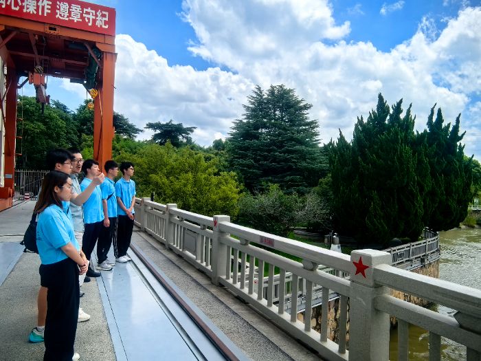 7月9日上午,实践团来到江都水利枢纽。该枢纽位于京杭大运河、新通扬运河和淮河入江水道交汇处,是南水北调东线工程的源头,也是我国规模最大的电力排灌工程、亚洲最大的泵站枢纽。在工作人员的带领下,实践团参观了南水北调东线工程数据中心,观看了相关专题片,结合沙盘听取了工程建设运行情况的介绍。成员们了解到,江都水利枢纽工程由4座大型电力抽水站、12座大中型水闸以及输变电工程、引排河道组成,具备灌溉、排涝、泄洪、通航、发电、改善生态环境等综合功能。通过实地参观江都一至四站,成员们深刻认识到该枢纽工程在保障区域水安全、促进经济社会发展方面的重要意义。