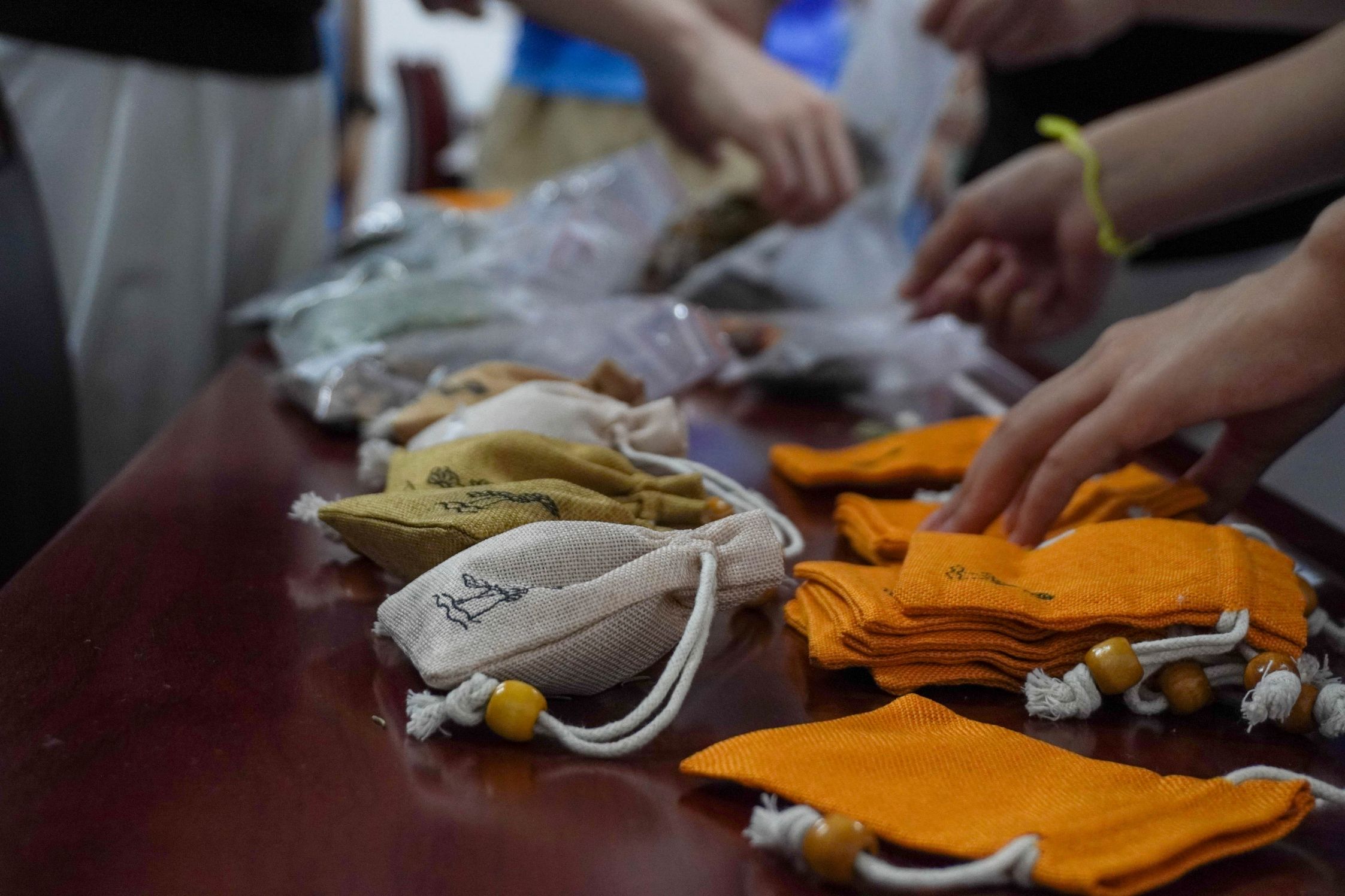 图为香囊制作区内居民制作香囊场景。刘伯琪摄