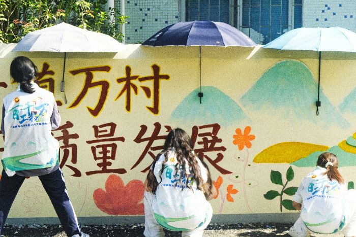 当颜料与老墙相遇,沉寂的村庄便开始有了温度。广东技术师范大学“奇果创科”百千万工程突击队走进紫金县好义镇,以墙为纸,以笔为媒,将艺术创作与乡村发展相结合,通过墙绘形式为乡村注入活力。