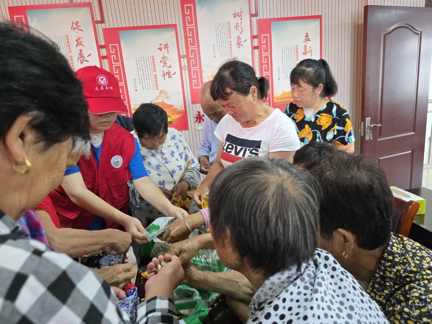 图为华园药院青年实践团队成员与村民们一同制作香囊。黄千毓 供图