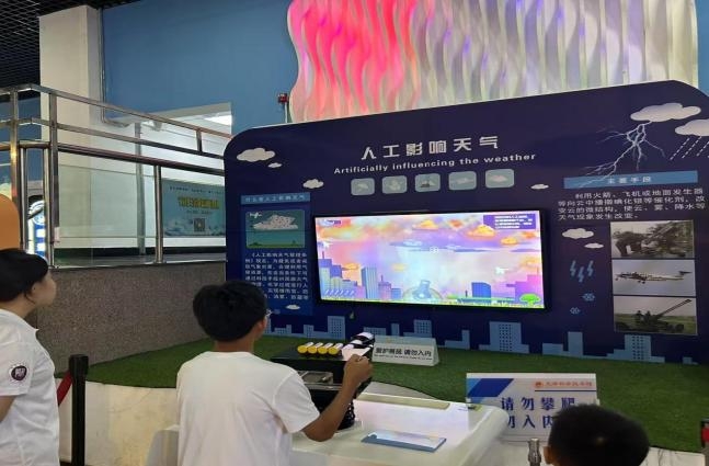 图为孤独症儿童在实践团成员引导下操作火箭发射装置。“星语心寰”实践团摄