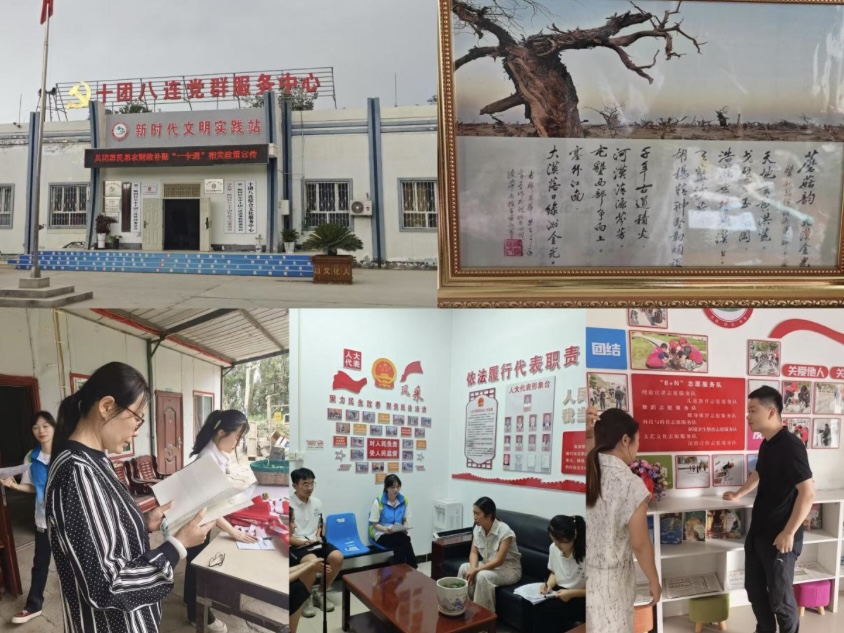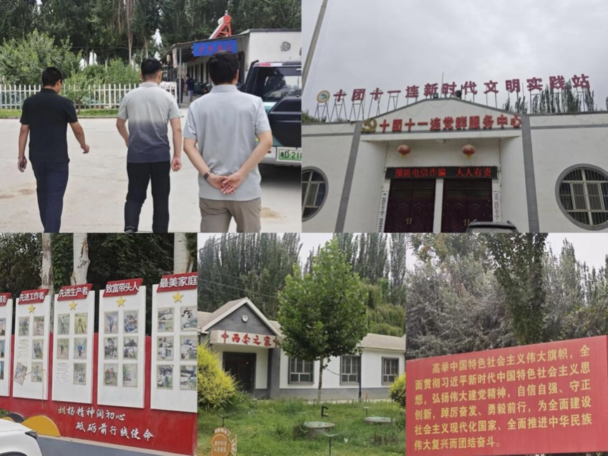 8连党群服务中心里,一场跨越时光的“校友之约”让团队暖流涌动。连队书记孙力看到我们的队旗,笑着指了指胸前的校徽:“我也是‘金胡杨’的后辈。”这位老校友翻出手机里的旧照片:十年前的8连还是土坯房连片,如今已变成规划齐整的新社区。“刚来时想过放弃,但看到职工们盼好日子的眼神,就觉得得留下来。”