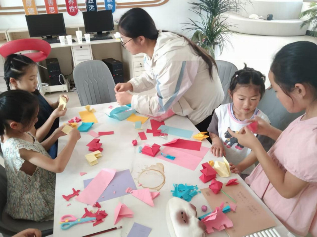 艺术课程上,志愿者带领孩子们体验多元创作。孩子们用粘土发挥奇思妙想,塑造出栩栩如生的作品;用沙画描绘心中所想;跟随指导,用剪刀剪出精美图案,感受传统文化的独特魅力;用画笔表达对祖国的热爱,传承红色基因。这些创作活动不仅激发了孩子们的创造力和想象力,还增强了他们的团队协作能力和动手能力,在学习的过程中培养他们的专注力和自信心,帮助他们在成长的道路上迈出坚实的步伐。