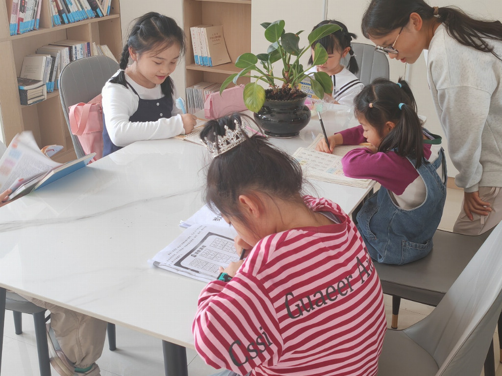 暑期课后辅导的课堂上,暖意与活力交织,一派其乐融融。志愿者化身“临时小老师”,有针对性地辅导孩子们的暑假作业。他们耐心答疑解惑,梳理解题思路,帮助孩子们高效攻克作业难关。在辅导过程中,注重培养认真审题、独立思考的习惯,鼓励他们大胆提问。转到阅读环节,孩子们更是全神贯注地凝视着书本,遇到生僻字或新学的成语,便随时提笔记录或主动请教;若是读到心仪的片段,还会雀跃地与同伴、老师分享,让课堂的互动里又多了几分纯粹的欢喜。