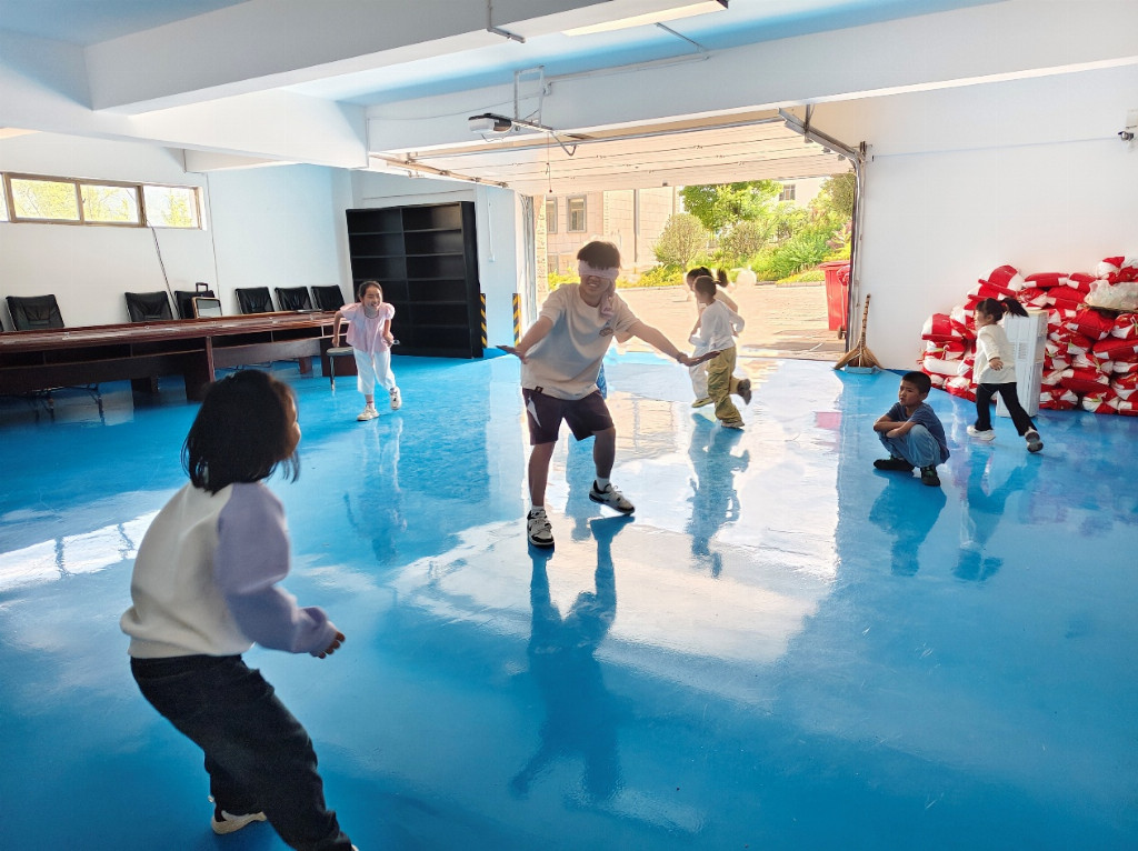 夏日午后,大学生志愿者与孩子们的游戏互动正酣。乒乓球台前,球在空中飞舞,小身影们踮脚挥拍,在与志愿者的你来我往中不时迸发欢呼;“你画我猜”环节,画板上歪扭的线条引得多方竞猜,急得出题者手舞足蹈;“一二三木头人”的口令刚落,定格的鬼脸与强忍的笑意相映成趣;盲人摸象时,志愿者蒙眼循着笑声摸索,碰倒障碍物的惊呼与孩子们的憋笑交织成歌。看似简单的游戏,不仅让孩子们尽情欢笑、锻炼身体,更在无形中拉近了彼此的距离,培养了规则意识、协作精神和勇气。