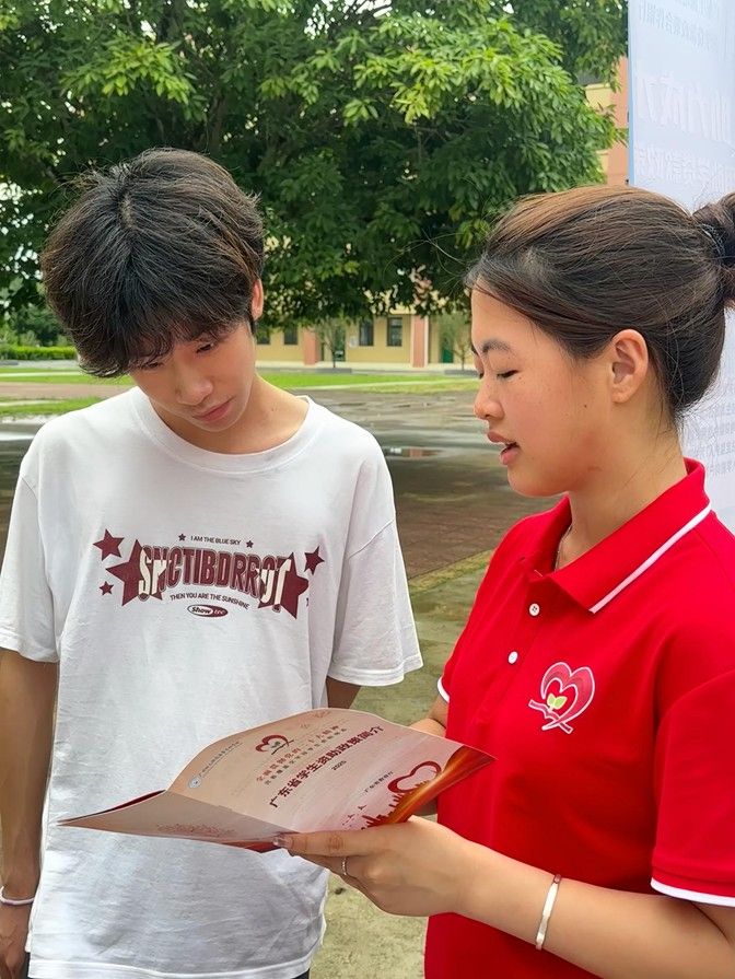 图为队员为学生讲解国家资助政策 陈梓琪 拍摄