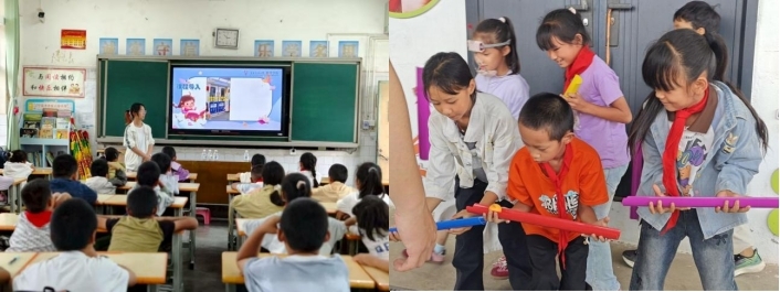 趣味数学进课堂,思维之花绽光芒。志愿者带来“单位的认识”志愿者通过生活实例,度量课桌,同学们相互比臂长,让学生直观理解拃和庹概念。请写规范字,请讲普通话,志愿者带来“普通话”课程,志愿者结合趣味普通话游戏,通过"生僻字""绕口令"等趣味形式,帮助学生纠正发音、规范表达。激发了孩子兴趣。同时还进行了“故事分享会”和“轨道传小游戏这样的课程让孩子对数学更感兴趣,能更好地运用数学知识解决实际问题,为未来打下坚实基础。