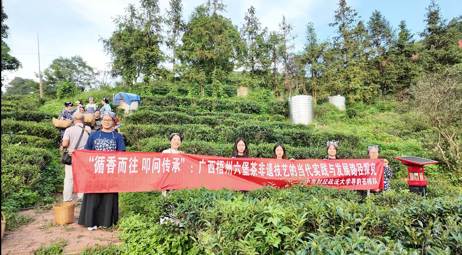 为深入推进非物质文化遗产六堡茶的保护与研究,助力中华优秀传统文化传承创新,中南财经政法大学寻韵苍梧队于7月15日至7月19日赴广西梧州六堡镇,围绕国家级非物质文化遗产"六堡茶制作技艺"展开实地调研。团队通过实地观察、深度访谈与科学验证,系统探究六堡茶千年技艺的"活态传承"密码,为广西六堡茶保护工作提供了学术支撑与实践经验。