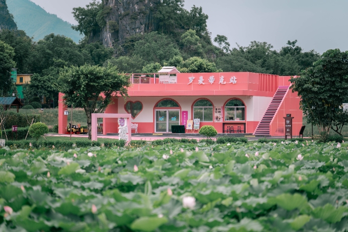 突击队进入景区,便被太极草坪如翡翠绒毯般的开阔景观所迎接。标志性景观“峰来运转”水轮车缓缓转动,轮叶带起的水雾在阳光下折射出虹彩光晕,为炎夏注入清凉意境。深入园区核心区,盛夏荷塘正值最佳观赏期,团队成员乘舟穿行碧叶间,记录下粉荷含露、鱼群巡游、蜻蜓点水的完整生态链。沿木板小径行至针茅草海,风过处绿浪翻涌的景致令人驻足,而“漫天飞仙”月牙步道通过悬空设计营造云端漫步幻境,将喀斯特地貌转化为沉浸式体验空间,成为年轻游客拍照热点。