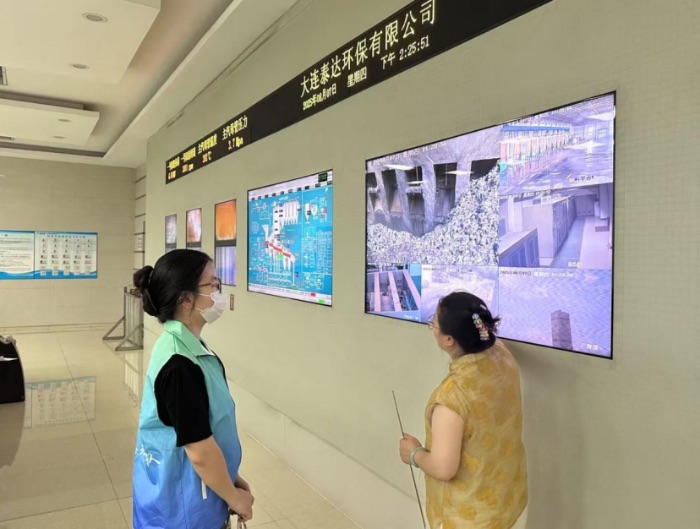 大连泰达环保有限公司作为东北首座生活垃圾焚烧发电厂,采用BOT模式运营,年处理生活垃圾达54.75万吨,年发电量1.9亿度,年上网电量1.7亿度,是大连城市生态治理的关键一环。团队成员在讲解员的带领下,先后参观了厂区2楼讲解区、主控室及5楼垃圾分拣控制室,沉浸式感受现代化垃圾处理全流程。